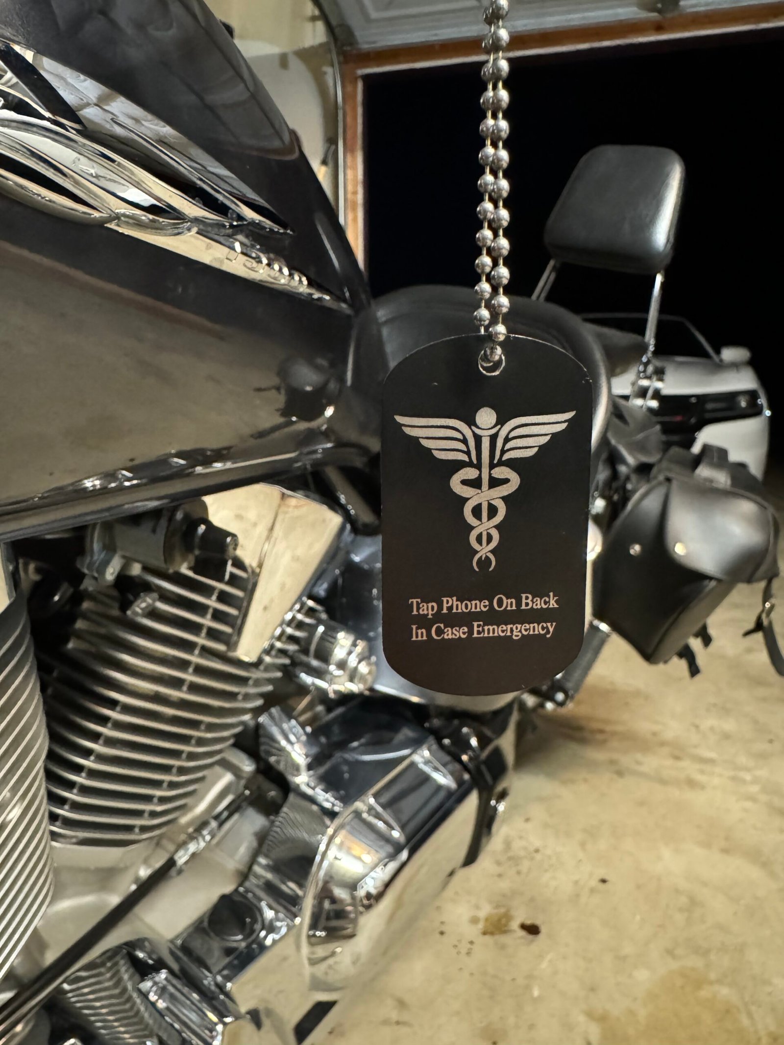The Infinity Tag is crafted in the traditional dog tag shape, offering a blend of style and functionality. Its sleek black finish ensures it looks great while providing reliable identification.